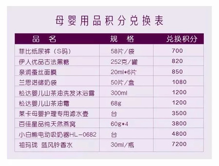 以下所有项目均可享受积分兑换