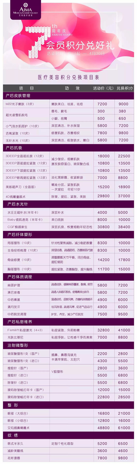哇哦,这么一大波美丽项目都可以兑换,美容的钱都省了一大笔哟!