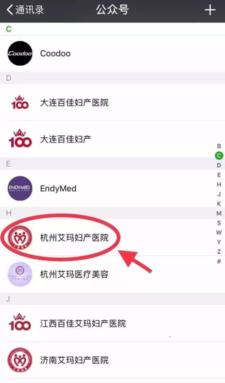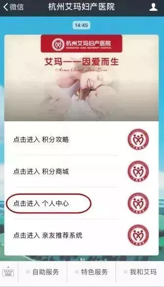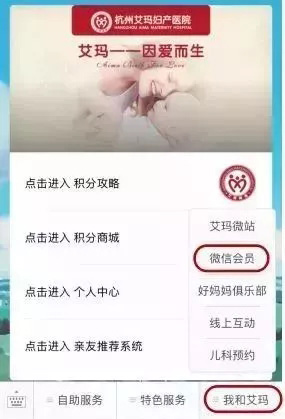1、微信公众号里进入杭州艾玛妇产医院