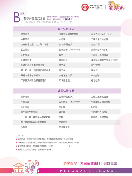 说到这里,我听说啊,为了给我们金猪宝宝打下良好的健康基础,艾玛还特地为爸爸妈妈们制定了一个全面的备孕套餐哦。不仅有我上面说的所有检查内容,还有HPV、TCT、甲状腺、乳腺等,可谓非常、非常全面了。