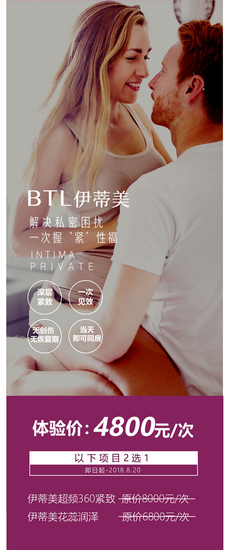 运用私密超频刀进行外阴塑形和内阴深层次收紧,特殊设计的360°立体射频无需调整角度即可全面和均匀地加热周围组织,快速收紧,持久紧窄,超声波作用让纤维胶原立即产生收缩重组,刺激大量胶原再生,“私密”壁增厚重现少女般紧窄。