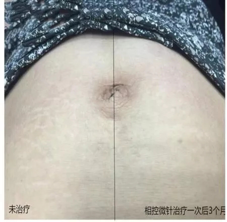 电脑控制递进式进针,由多个电源同时发射能量,热量集中加热至真皮层,激发胶原蛋白、弹力蛋白和透明质酸(玻尿酸)的重组和新生,明显改善妊娠纹、橘皮组织,并起到紧致提升的作用。
