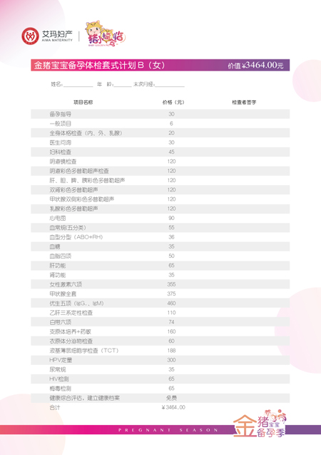 艾玛妇科大主任赵玲利介绍,夫妻双方应在备孕前三个月做一次细致的孕前检查,以了解各自的身体情况,一旦发现问题即可马上治疗。