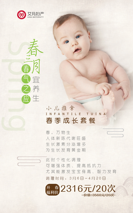 艾玛小儿推拿师魏娜娜介绍说,在春季使用健脾益胃、疏肝理气、补肝益肾等手法,根据宝宝不同体质进行按摩,刺激相应穴位,可让宝宝经络通畅、气血流通、修正脾胃、补养正气、从而激发多项生长因子,促进其快速、健康发育,为宝宝长个增添助力。