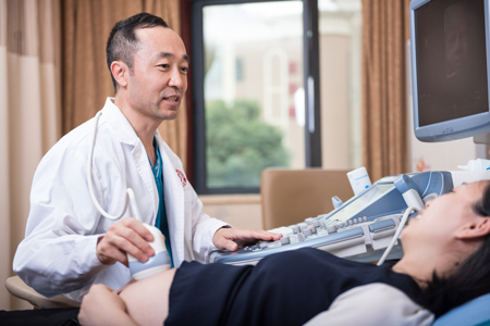 “因此,我们将这几项检查一并列入‘染色体异常筛查’套餐,从鼻骨缺失与否、三尖瓣是否有反流,以及静脉导管的频谱等指标,联合早期母体血清学检查,对21三体的检出率能达到90%。在这一时期对无脑儿、无叶全前脑、肢体缺失、严重的腹壁缺损等畸形可以早期检出。”艾玛超声影像科李井成主任说。