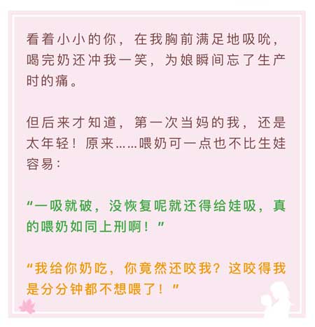 “让我没整觉睡休息不好,我也认了,毕竟他满足,我也满足。但是!我给你奶吃,你竟然还咬我?这‘小没良心’的,咬得我是分分钟都不想喂了!”