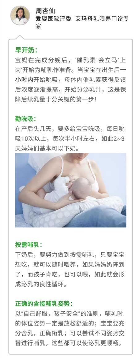 早开奶、勤吮吸按需哺乳、正确的含接哺乳姿势是保障母乳的关键!