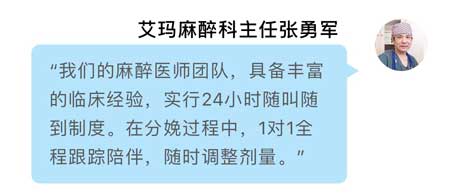 但是,艾玛的麻醉医师可是24小时随叫随到的!即使在半夜,若是产妇有需求,也可得到无痛分娩服务。