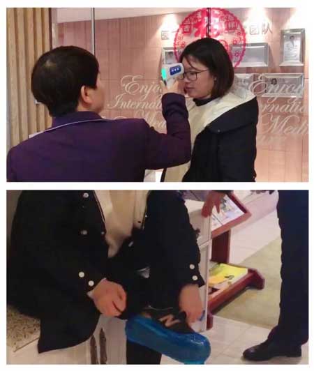 凡新入、外出或探访人员,都需体温测量、换鞋、严格手消毒,保证无异常后才可进入。