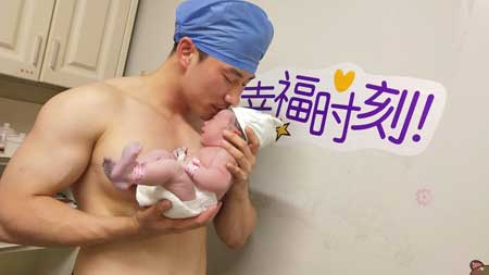 抱起宝宝,肌肤接触那一刻,我还有点恍惚没有实感,心里想的是:就这个小东西,让我老婆辛苦了这么久,太心疼了。