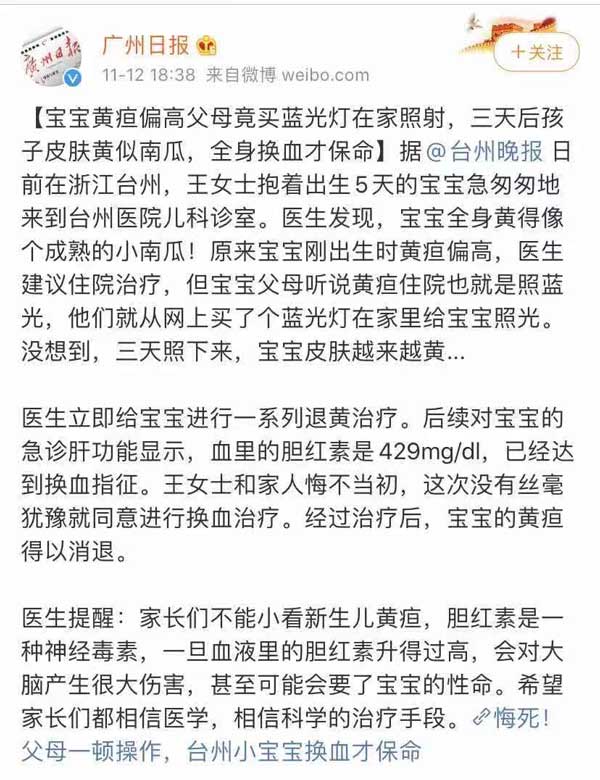 最近,浙江台州一家庭就因宝宝黄疸未及时治疗,最终只得换血,宝宝才褪黄……