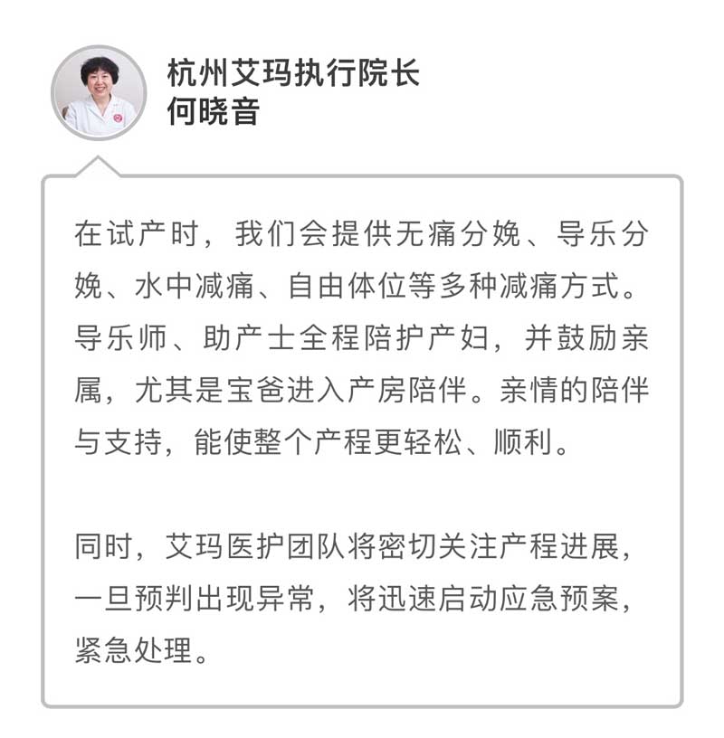 (宝妈S女士):因为已经有了在艾玛生大宝的经历,所以到了发动的那一天,并不会很害怕紧张。分娩前,医生就将所有可能的情况提前告知于我。并和我说每次产检结果都挺好,骨盆、宫颈,以及宝宝的体重等条件都不错,顺产成功的可能性还是很大的,这也给了我很大信心。