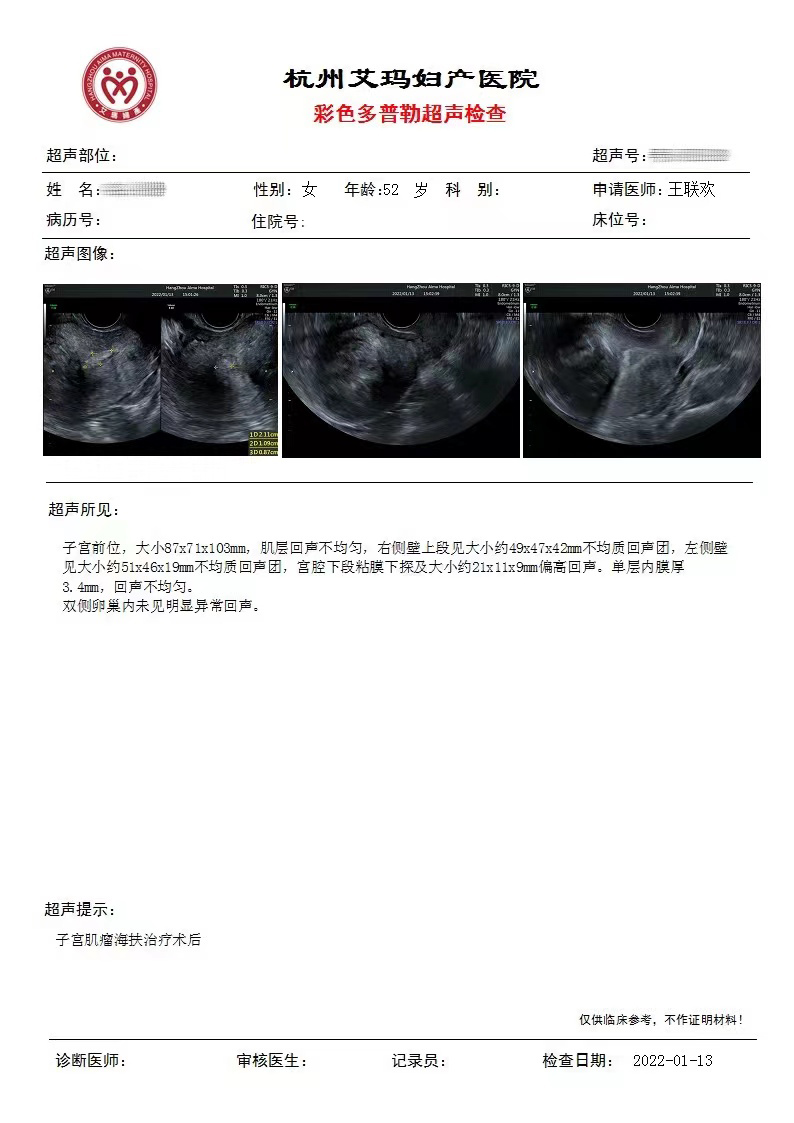 艾玛妇科主任王联欢在综合评估后,认为她的情况可以采用HIFU治疗。