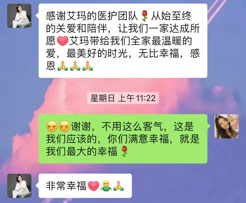 正好,我的好朋友就是在艾玛分娩的,说艾玛的医疗水平与服务都很棒,并向我推荐了她的助产士贺雪静。所以,我就来到了艾玛。”