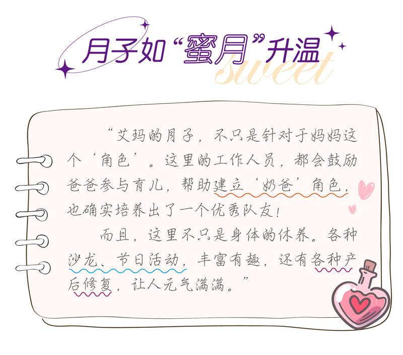 “生大宝的时候在艾玛坐月子,就被这里的服务圈粉了!这回生二宝,也毫不犹豫来这里,选择真的没有错!”