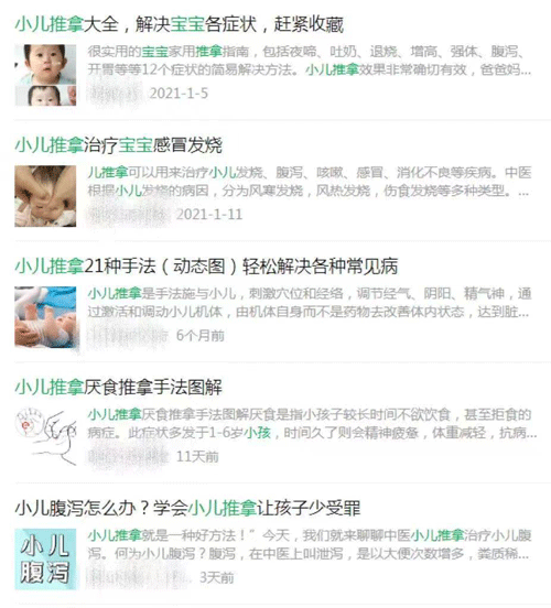 在网上搜索“小儿推拿”,很多都是照着自学的教程。