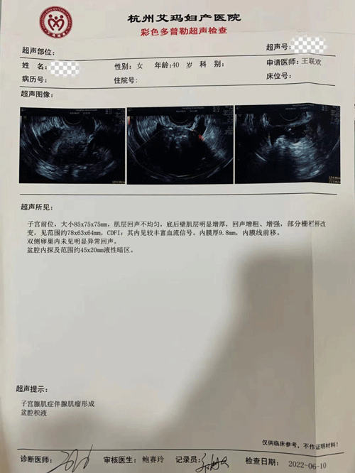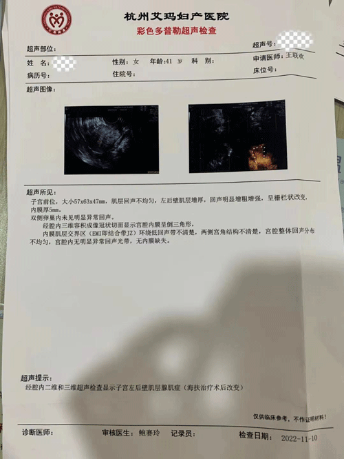 与腺肌症斗争了10年的Y女士,当听说艾玛有HIFU(高强度聚焦超声)这种无创治疗子宫腺肌症的方法后,立即来到了这里。艾玛妇科主任王联欢在了解她的情况与诉求后,为她安排了超声检查。